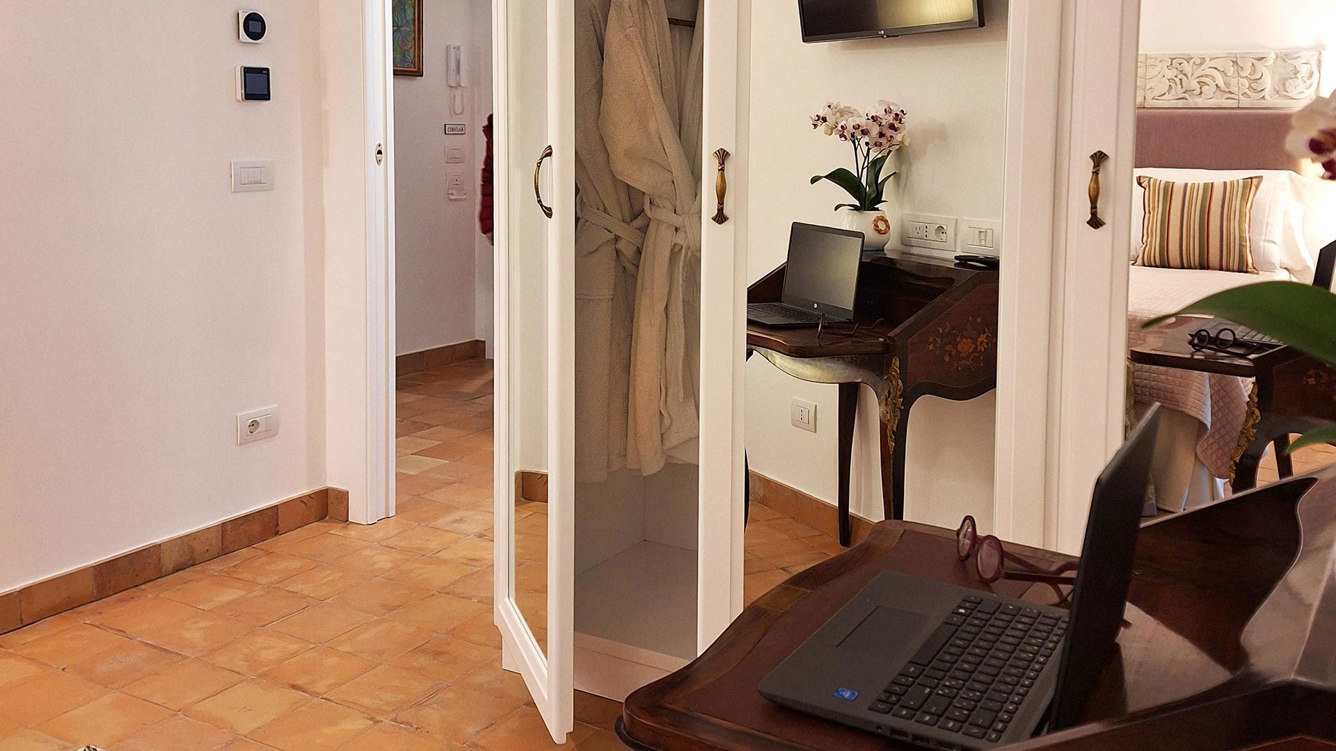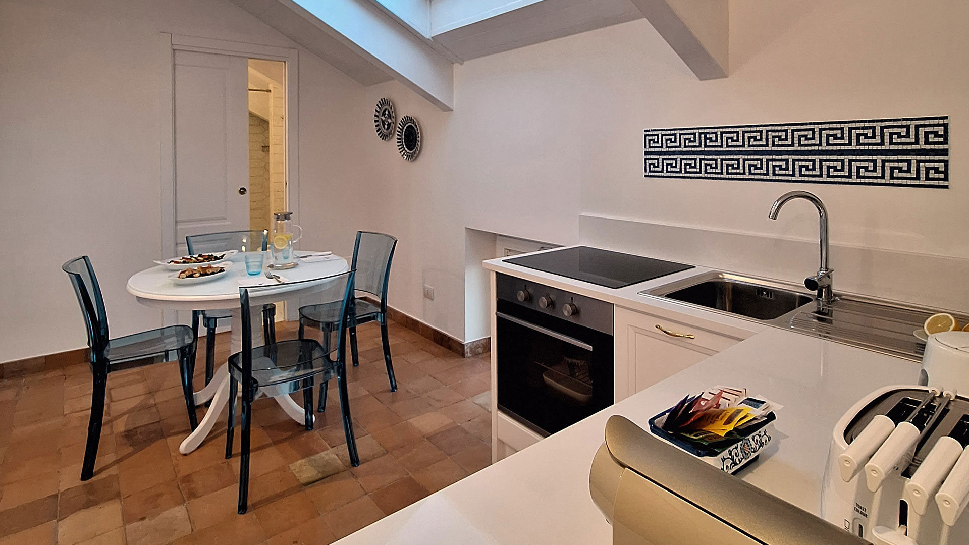 The apartment is completed by Euriclea, a separate and private double bedroom with its own en-suite bathroom with shower, ensuring additional privacy and comfort.